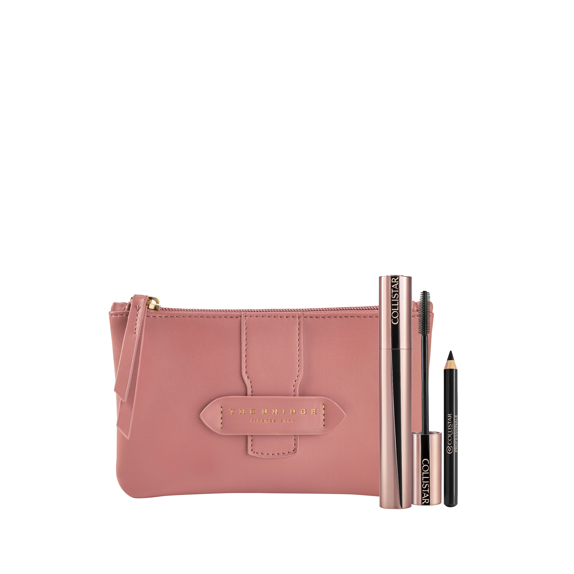 POCHETTE THE BRIDGE: The Bridge, eccellenza della pelletteria italiana, firma le esclusive Beauty-Bag dei cofanetti regalo Collistar. Le trousse dal design elegante ed essenziale sono abbinate ai prodotti Collistar più amati: scegli la tua combinazione tra le proposte delle linee Trucco, Viso, Corpo e Uomo.