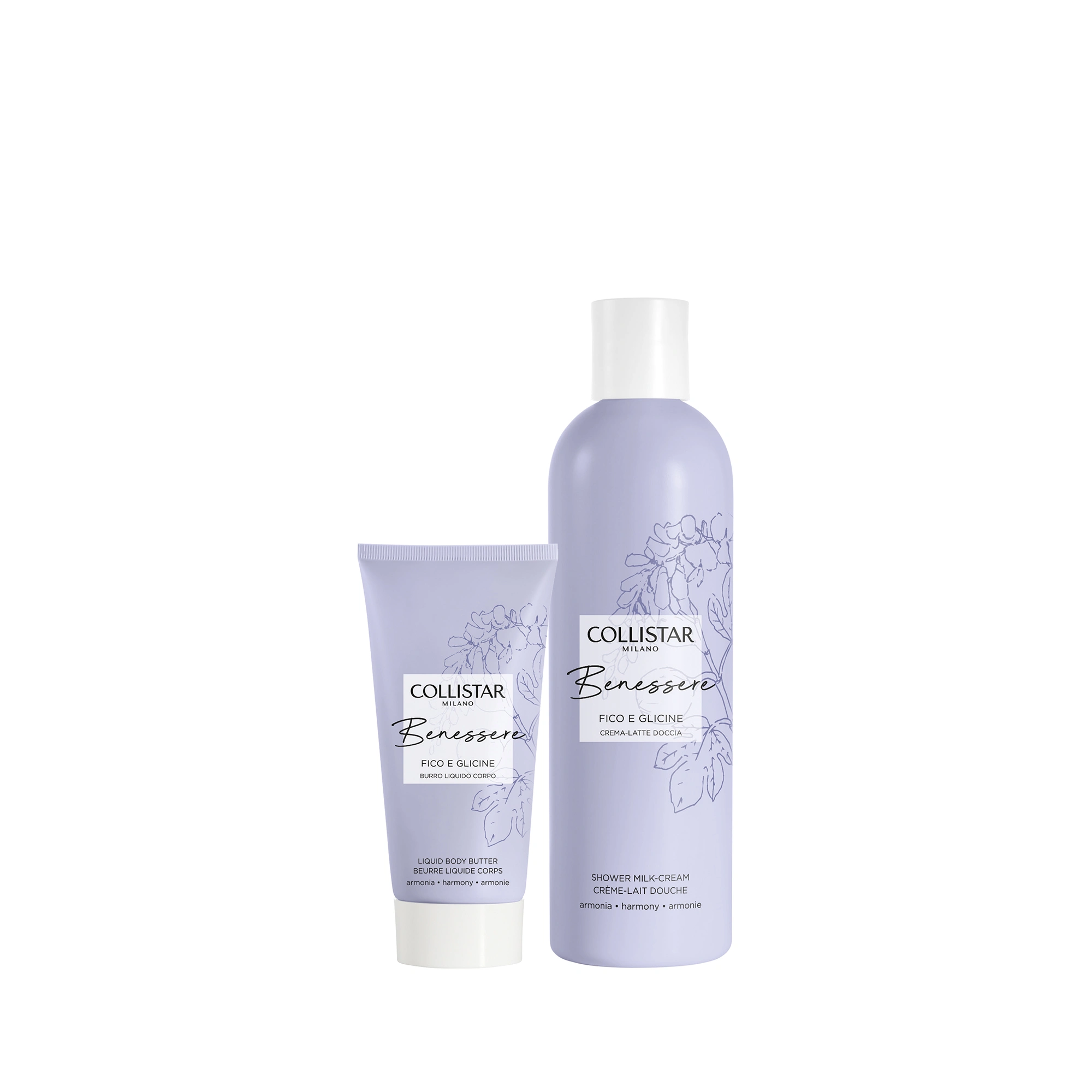 CREMA-LATTE DOCCIA: Dalla texture soffice e cremosa, questo crema-latte doccia, grazie a delicati tensioattivi deterge delicatamente il corpo. L’estratto di Fico Bianco italiano, il Pepe Rosa e un mix di oli vegetali rendono la pelle subito più morbida, idratata e vellutata. Il plus della formula? Uno speciale attivo di neurocosmesi, l’estratto di Olio di Coriandolo, che genera una sensazione di armonia ed equilibrio. La sua fragranza dalle dolci note cremose del fico, esaltate dalla sontuosa ricercatezza del glicine, avvolge il corpo e la mente lasciando sulla pelle un sottile velo di profumo e rendendo la doccia un’esperienza di benessere totale.
