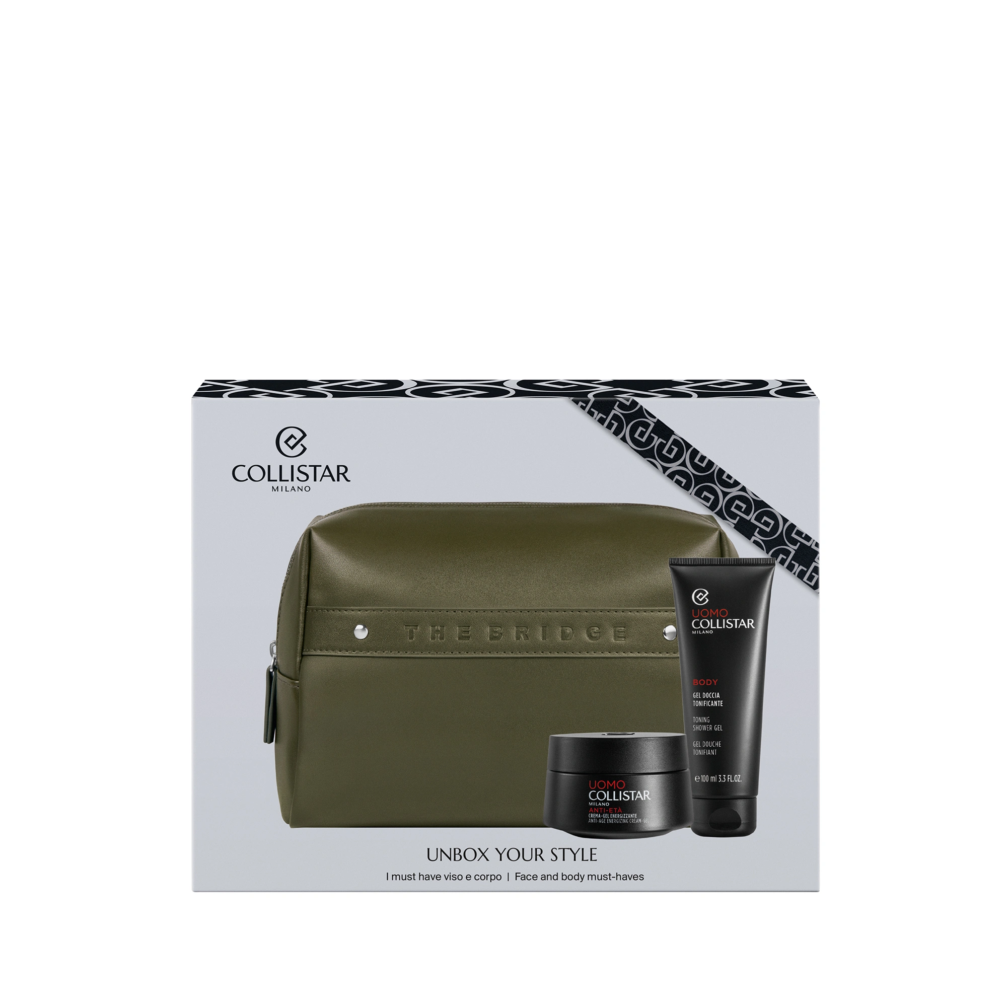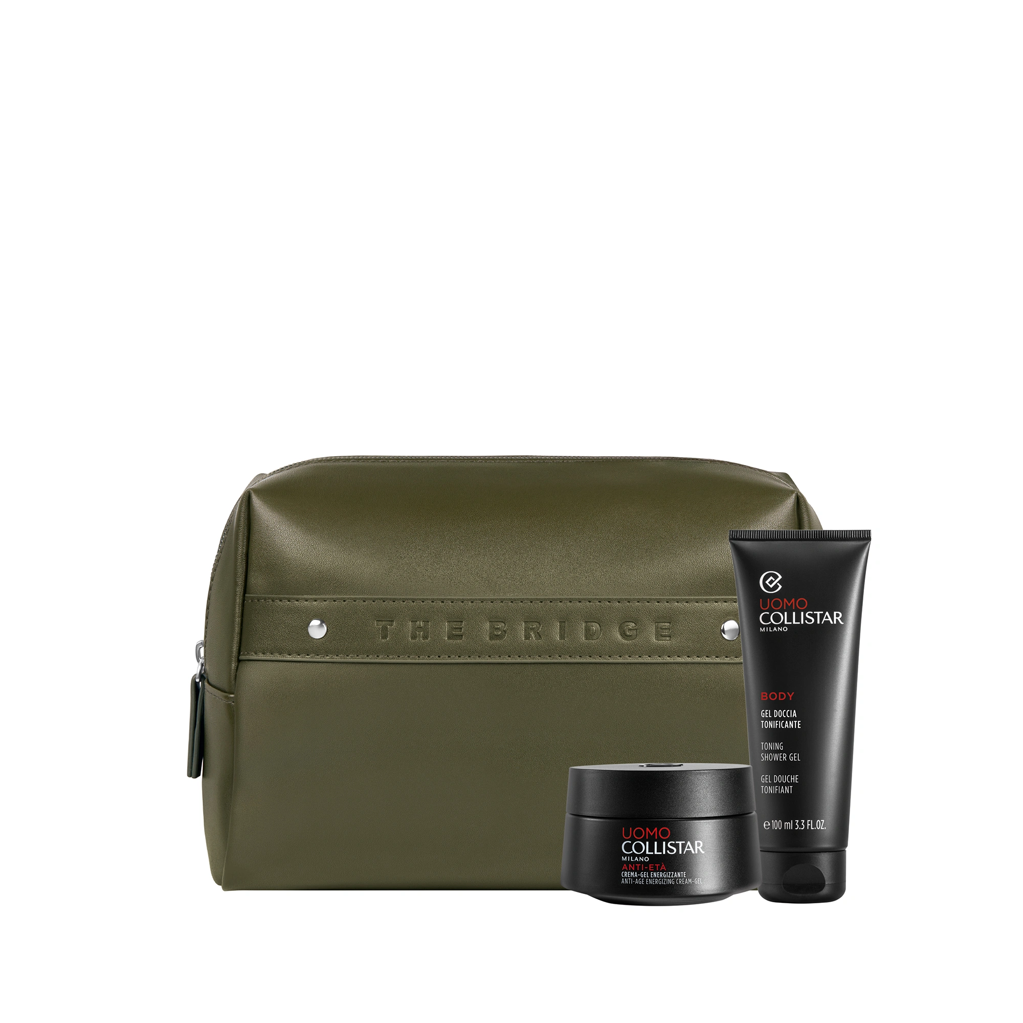 POCHETTE THE BRIDGE: The Bridge, eccellenza della pelletteria italiana, firma le esclusive Beauty-Bag dei cofanetti regalo Collistar. Le trousse dal design elegante ed essenziale sono abbinate ai prodotti Collistar più amati: scegli la tua combinazione tra le proposte delle linee Trucco, Viso, Corpo e Uomo.