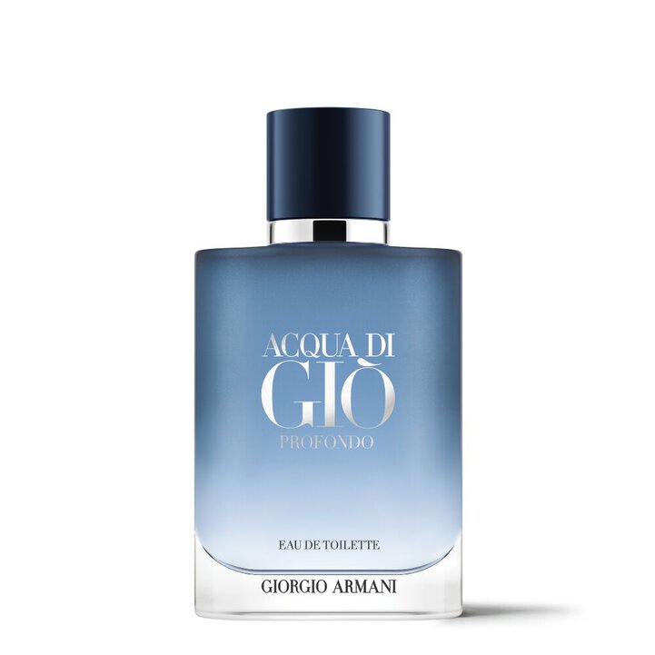 Giorgio Armani presenta ACQUA DI GIÒ PROFONDO EAU DE TOILETTE, una fragranza dall'intensità nuova e fresca che cattura l'emozione di un'immersione nelle fredde profondità marine. Un contrasto tra spezie frizzanti e un pompelmo zuccherino, energizzato dalla freschezza del cipresso e dalla profondità erbacea del lavandin. Simbolo del fascino ritemprante di ACQUA DI GIÒ PROFONDO EAU DE TOILETTE, il caratteristico flacone Acqua Di Giò si veste di toni blu smerigliati in dégradé, richiamandosi ai colori delle profondità marine.